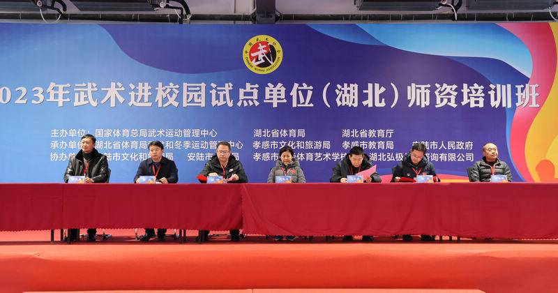本次培训由国家体育总局武术运动管理中心、湖北省体育局、湖北省教育厅主办,湖北省体育局武术和冬季运动管理中心、孝感市文化和旅游局、孝感市教育局、安陆市人民政府承办,安陆市文化和旅游局、安陆市教育局、孝感市弘极体育艺术学校协办。